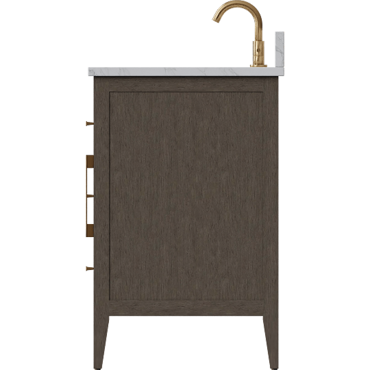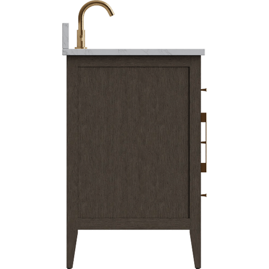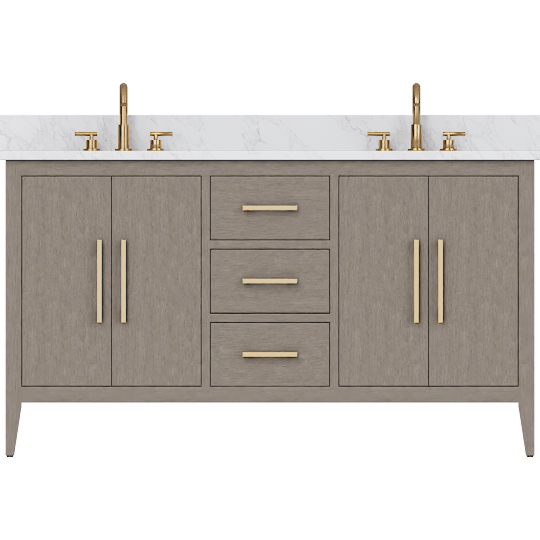 Oasis 60 Double Sink 4 Door 3 Drawer Bath Vanity Cabinet With Marble Top & Gold Hardware, Driftway Grey