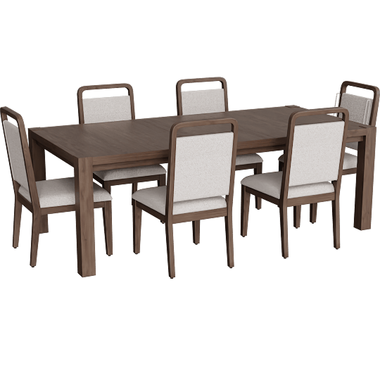 Sawyer Brown Walnut Wood 68-88'' Extendable Rectangular Dining Table With Eden Brown Chairs Set for 6