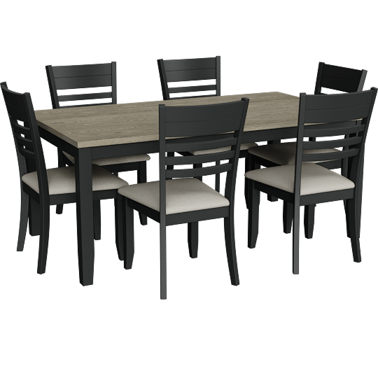 Folio Black + Brown Natural Two Tone Rectangular Wood 70 Dining Table, 6 Seat, Rubberwood
