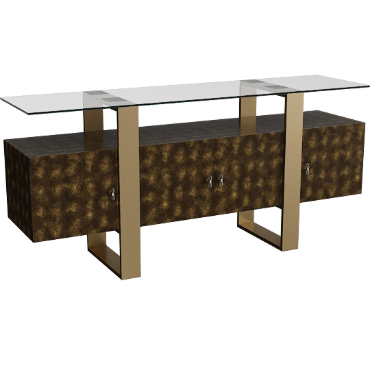 Modern Brown Gold + Glass 70 Storage Cabinet With Doors + Shelf, Entryway