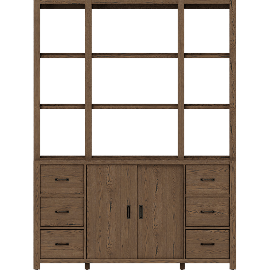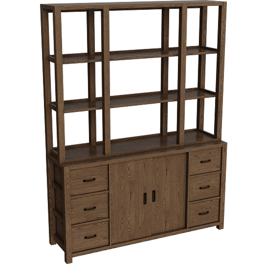 Kai II Brown Oak Buffet With Kai Brown Cracked Oak Hutch