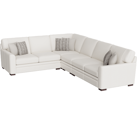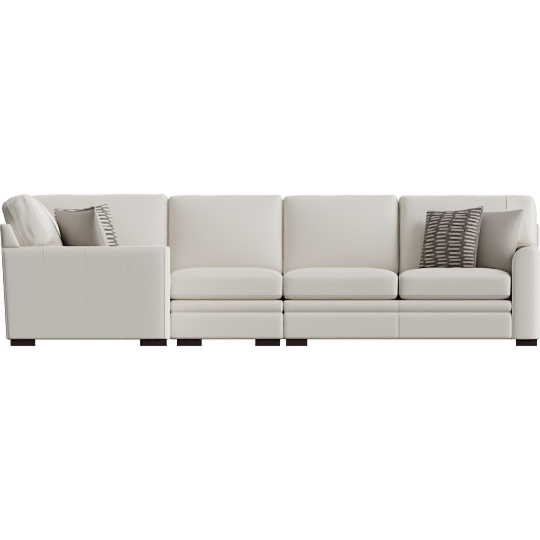 Greer Vanilla White Leather 4 Piece 133 Modular L-Shaped Sectional With Right Arm Facing & Left Arm Facing Loveseat Armless Chair and Corner