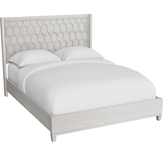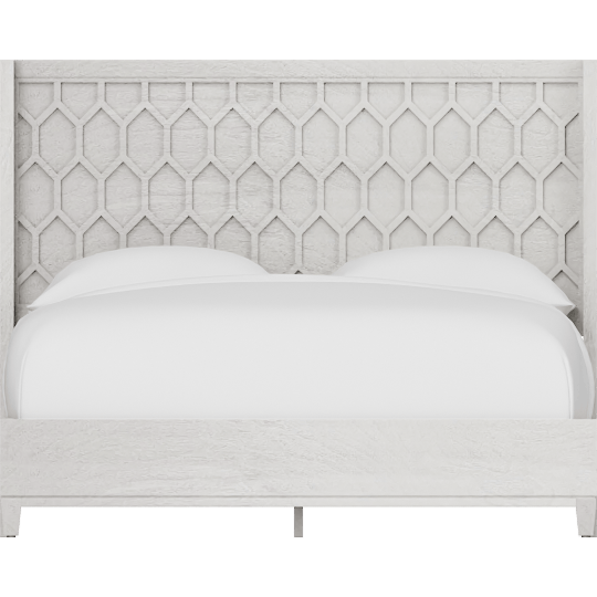 Dennie White Queen Panel Bed With Honeycomb Headboard Design