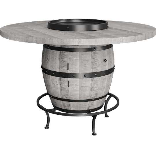 Doyle Rust Grey Wood Round Pub Table With Wine Barrel Base + Lazy Susan, Mindi, 4 Seat