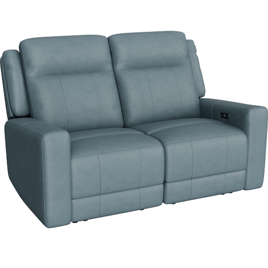 Tatiana Blue Leather 64 2 Piece Power Reclining Modular Loveseat With USB