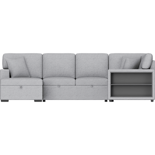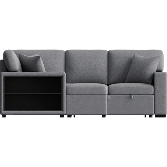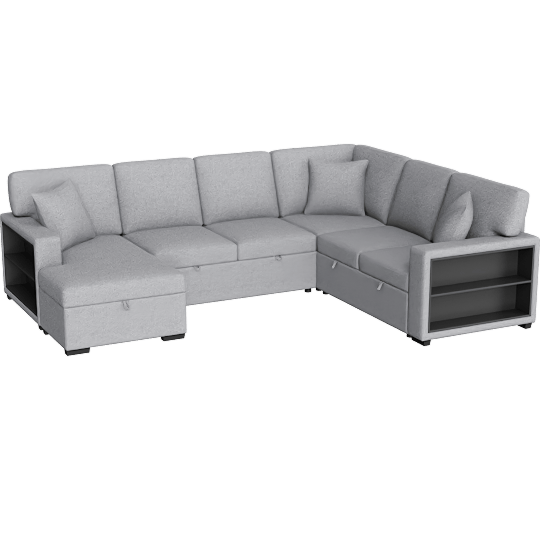 Dimitri Grey Boucle Fabric U shaped Sleeper Sectional with Left Chaise Pull-Out Bed Hidden Storage & Charging Ports