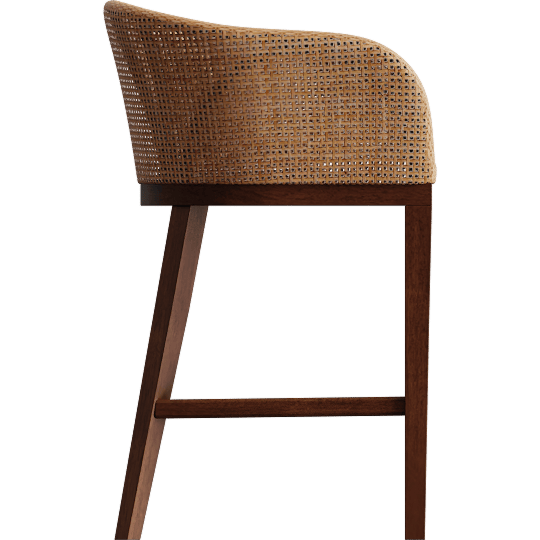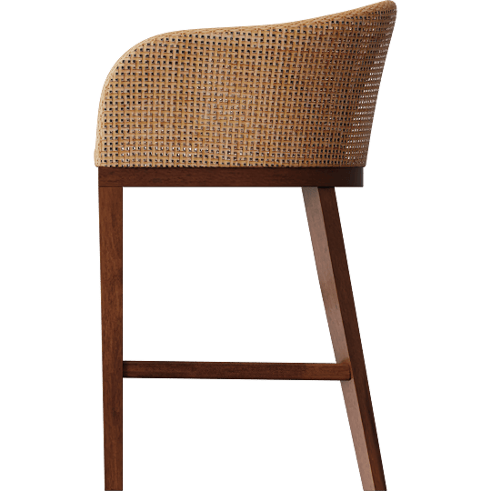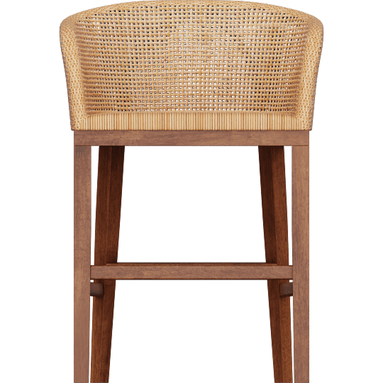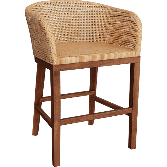 Papua Modern Bohemian Natural Rattan & Walnut Brown Acacia Wood 24.4 Counter Height Stool, Woven