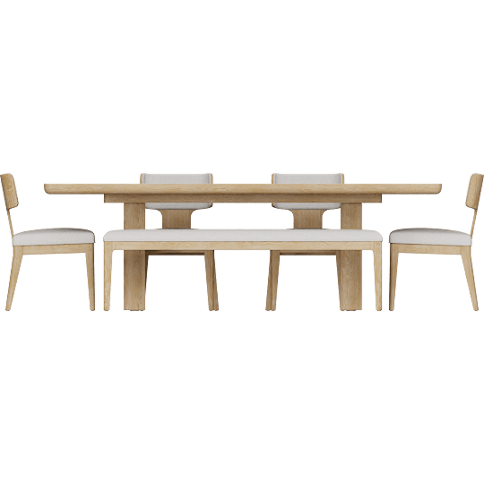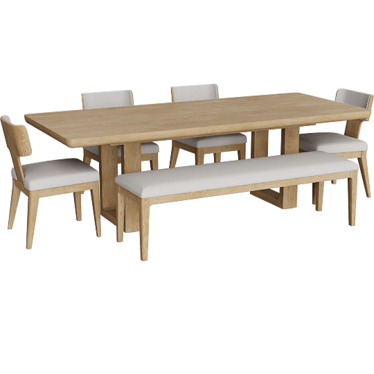 Mika Natural Oak 80-98 Ext Dining Table With Bench + Wood Chair Set For 6