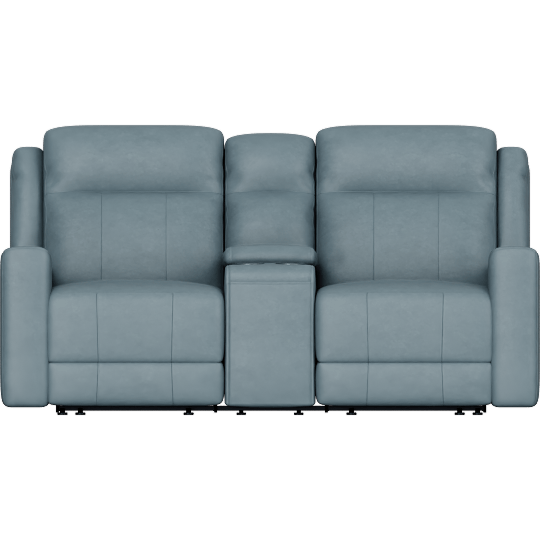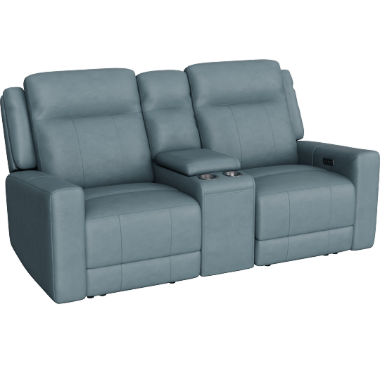 Tatiana Blue Leather 77 3 Piece Power Reclining Modular Console Loveseat With USB