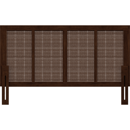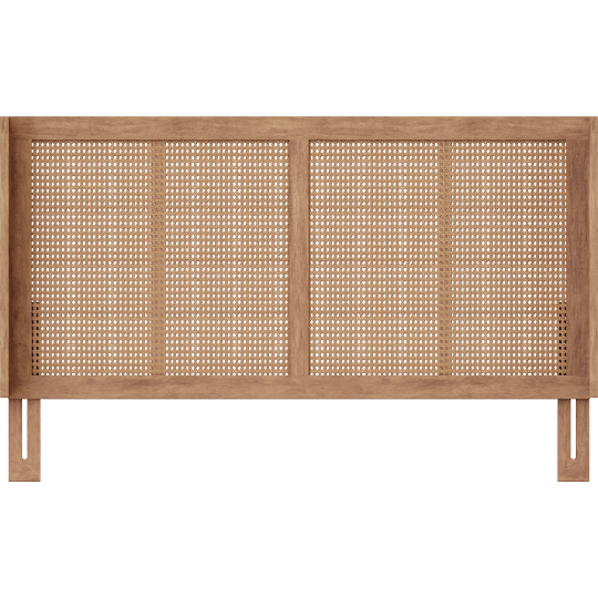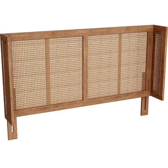 Devynn Queen Ash Brown Walnut Finish Natural Wood And Synthetic Rattan Wrap Around Headboard, Woven
