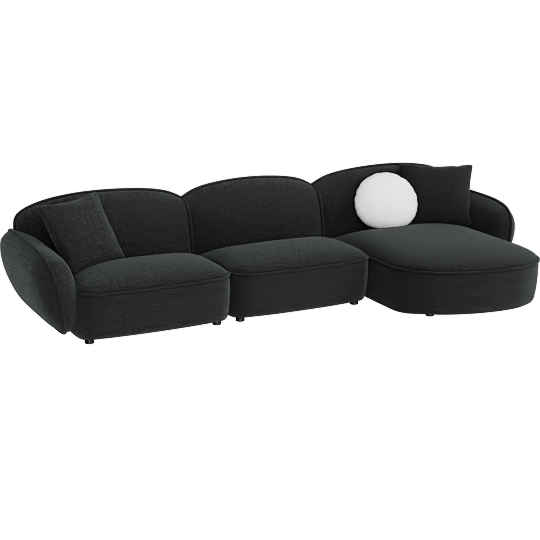Lucie 3Pc Sectional W 3 Pillows Black & White Shimmer Chenille